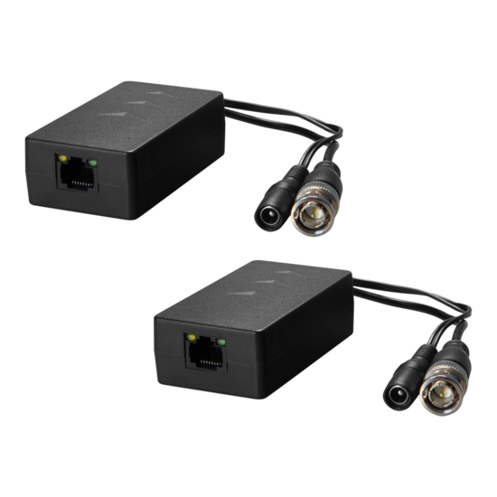 Video-Balun BA607PV-HD mit RJ45-Anschluss und DC-Stecker.